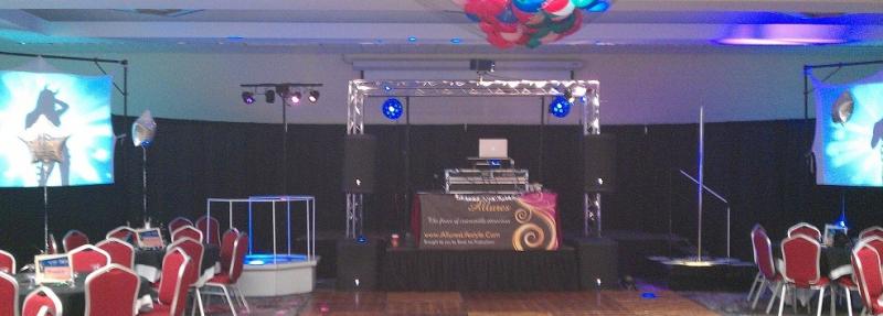 Black Ice Productions is your complete event entertainment connection. We offer services from a simple DJ set up, to complete atmosphere transformations including video screens, mood lighting, intregrated fog machine and laser lights, dramatic "ultra lounge" style draping, VIP cabana areas, go-go stage and dancer poles.